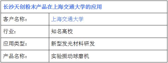 上海交通大學(xué)在天創(chuàng)粉末采購一臺(tái)實(shí)驗(yàn)振動(dòng)球磨機(jī),用于新型發(fā)光材料球磨實(shí)驗(yàn)研發(fā)。